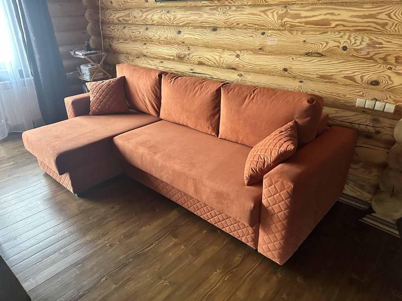 Декоративная стёжка подчёркивает строгие, геометрические формы дивана, придавая ему стильный и современный вид.