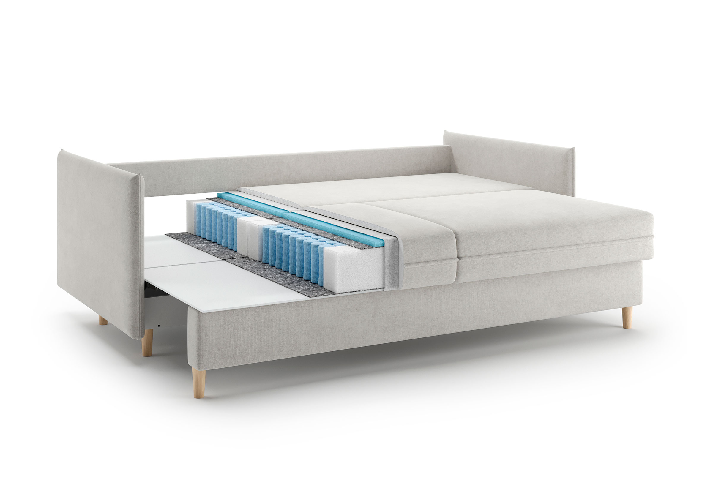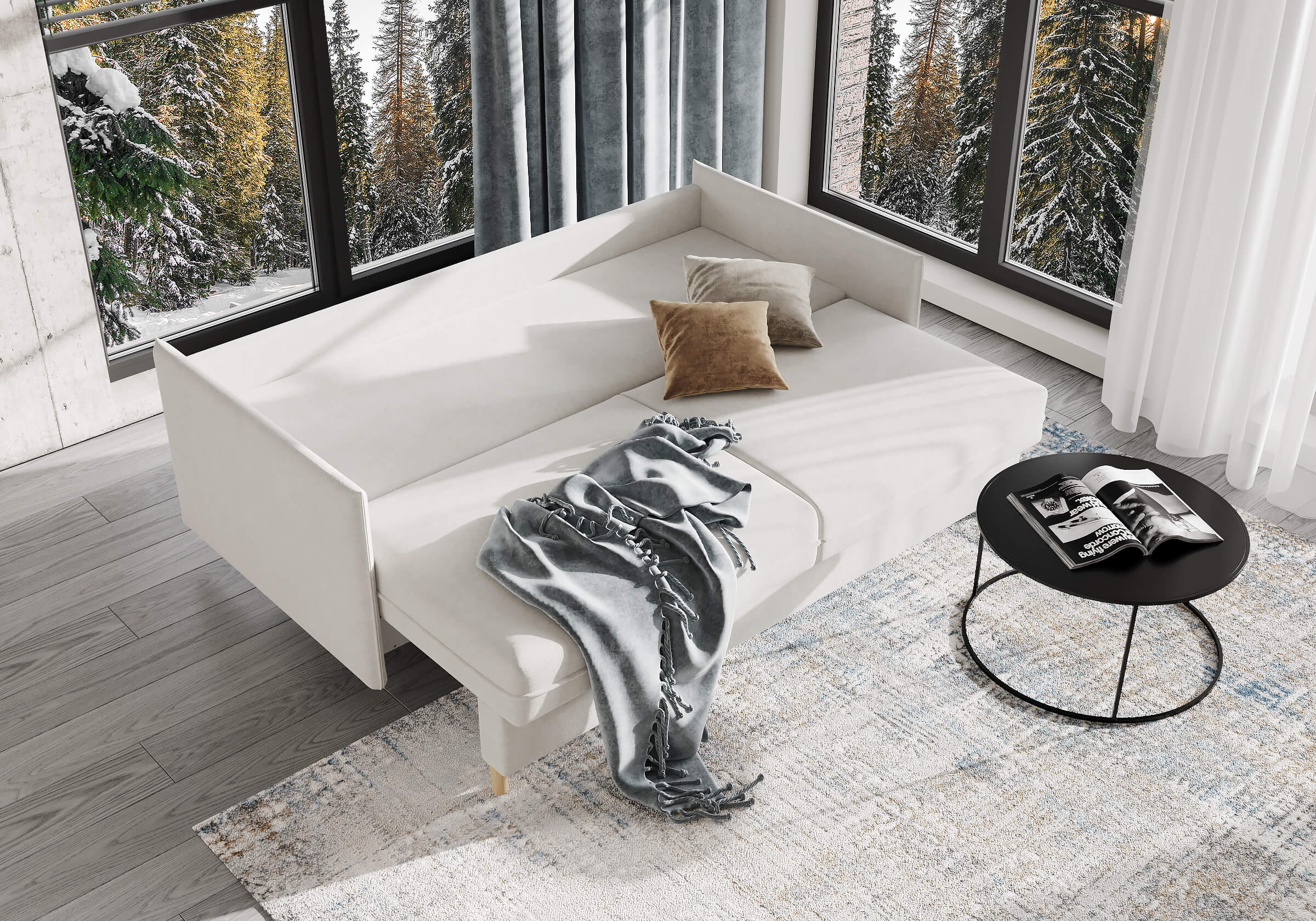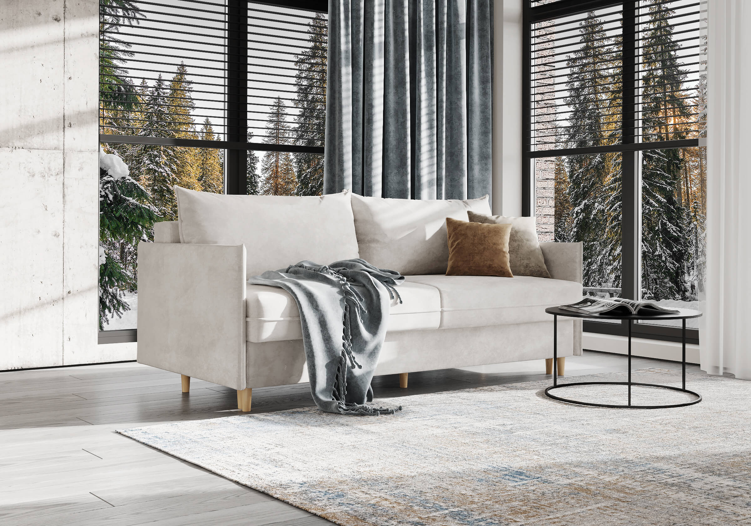 Простота конструкции, лаконичный декоративный кант в качестве декора позволяют дивану органично вписаться в современные интерьеры в скандинавском стиле.