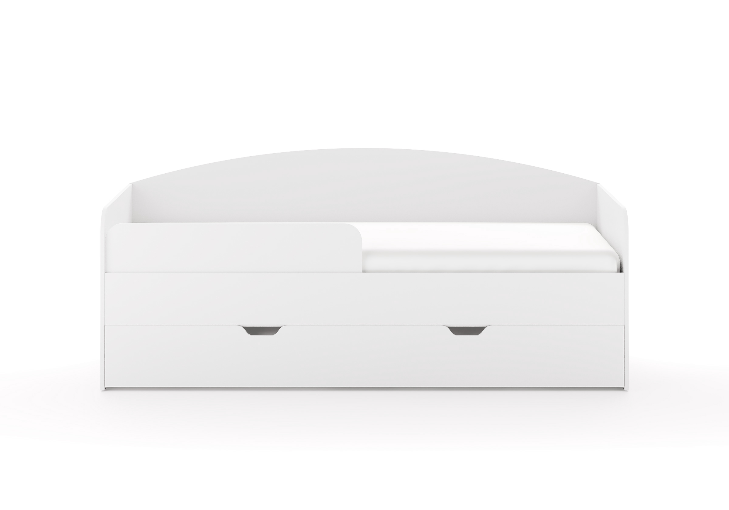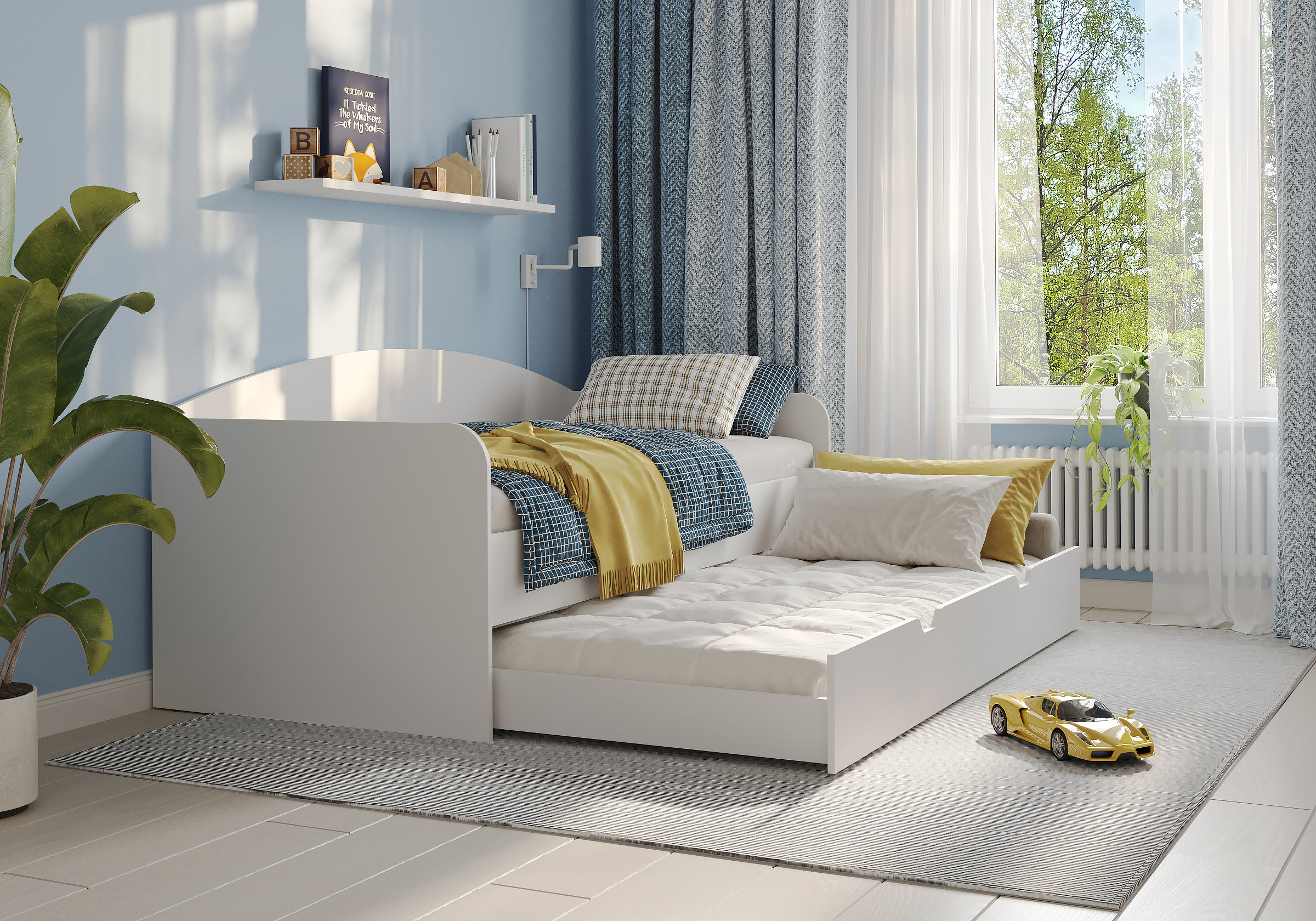 Кровать Martin  из ЛДСП с дополнительным выдвижным спальным местом. Выдвижная часть модели может использоваться в качестве дополнительного спального места или вместительного бельевого ящика. Выдвижное спальное место меньше основного на 10 см и по длине, и ширине. Модуль выдвигается с помощью роликов. Возможность полного выдвижения способствует легкой уборке под кроватью. Возможна установка защитного бортика с правой или левой стороны.