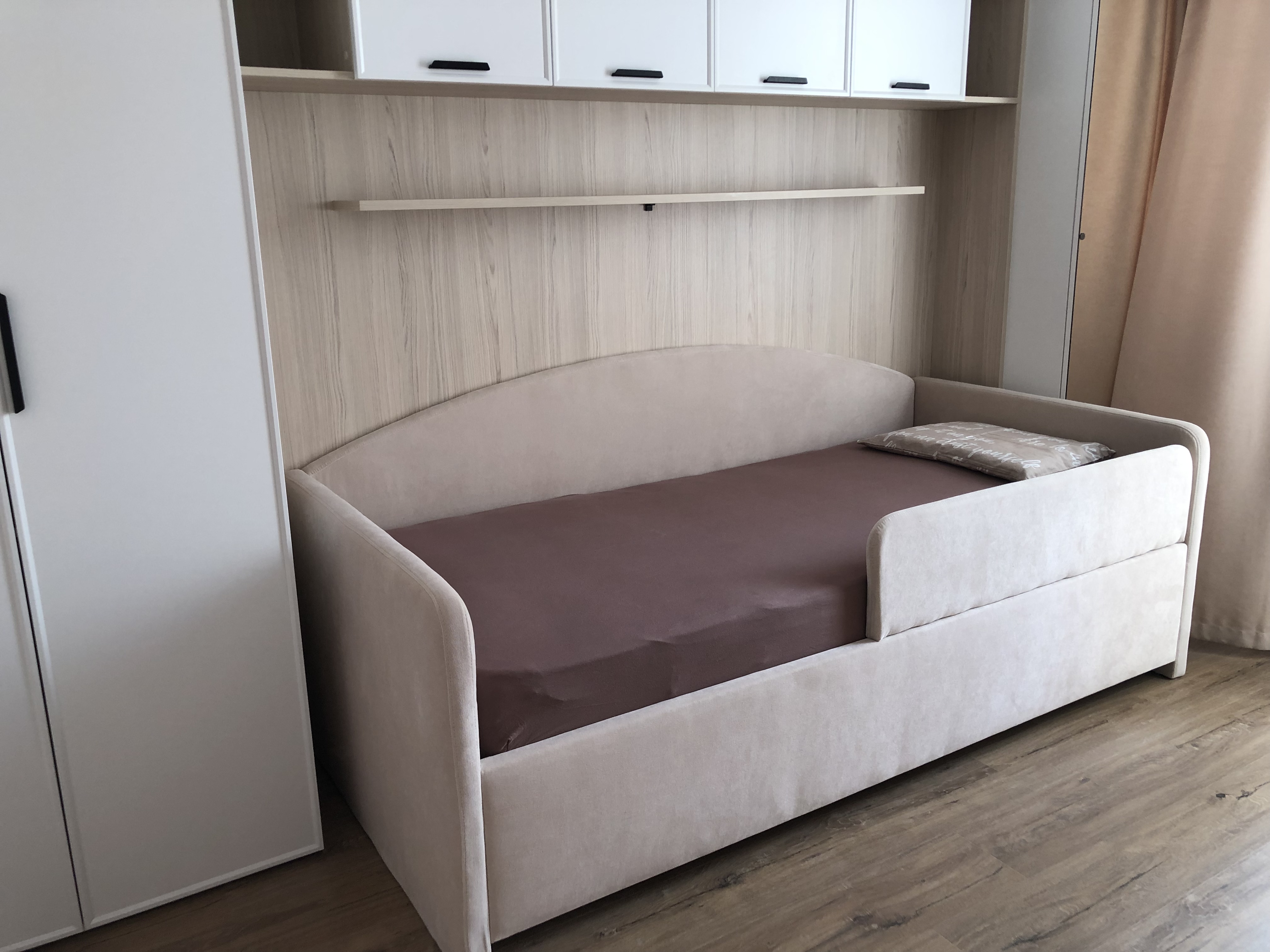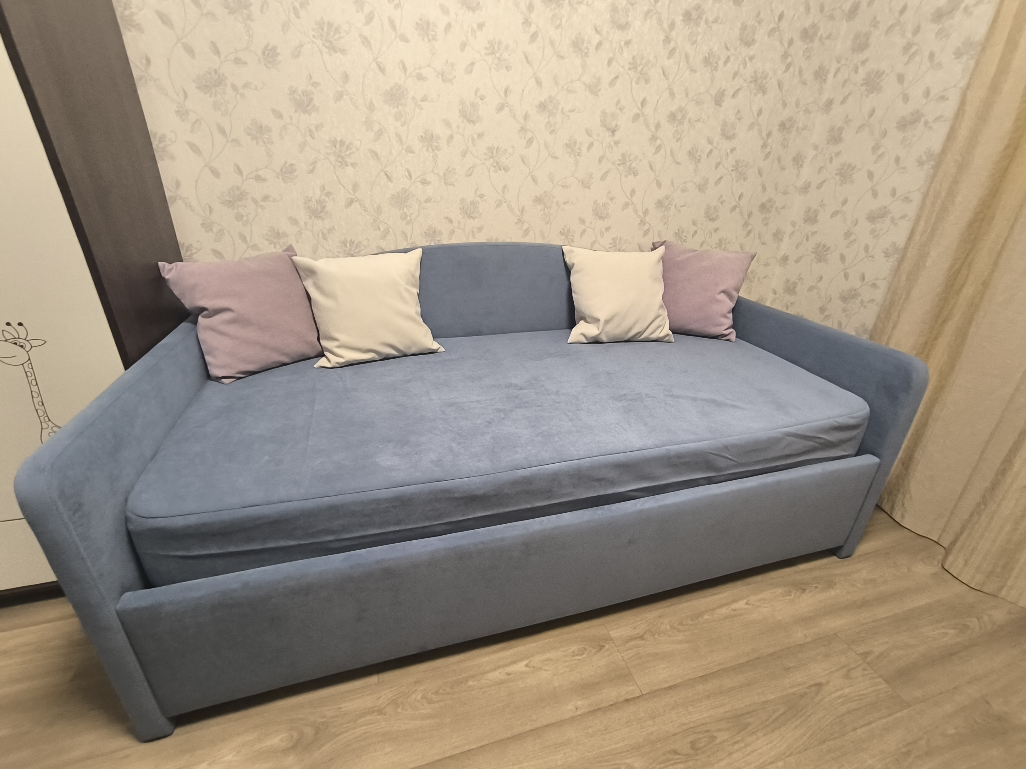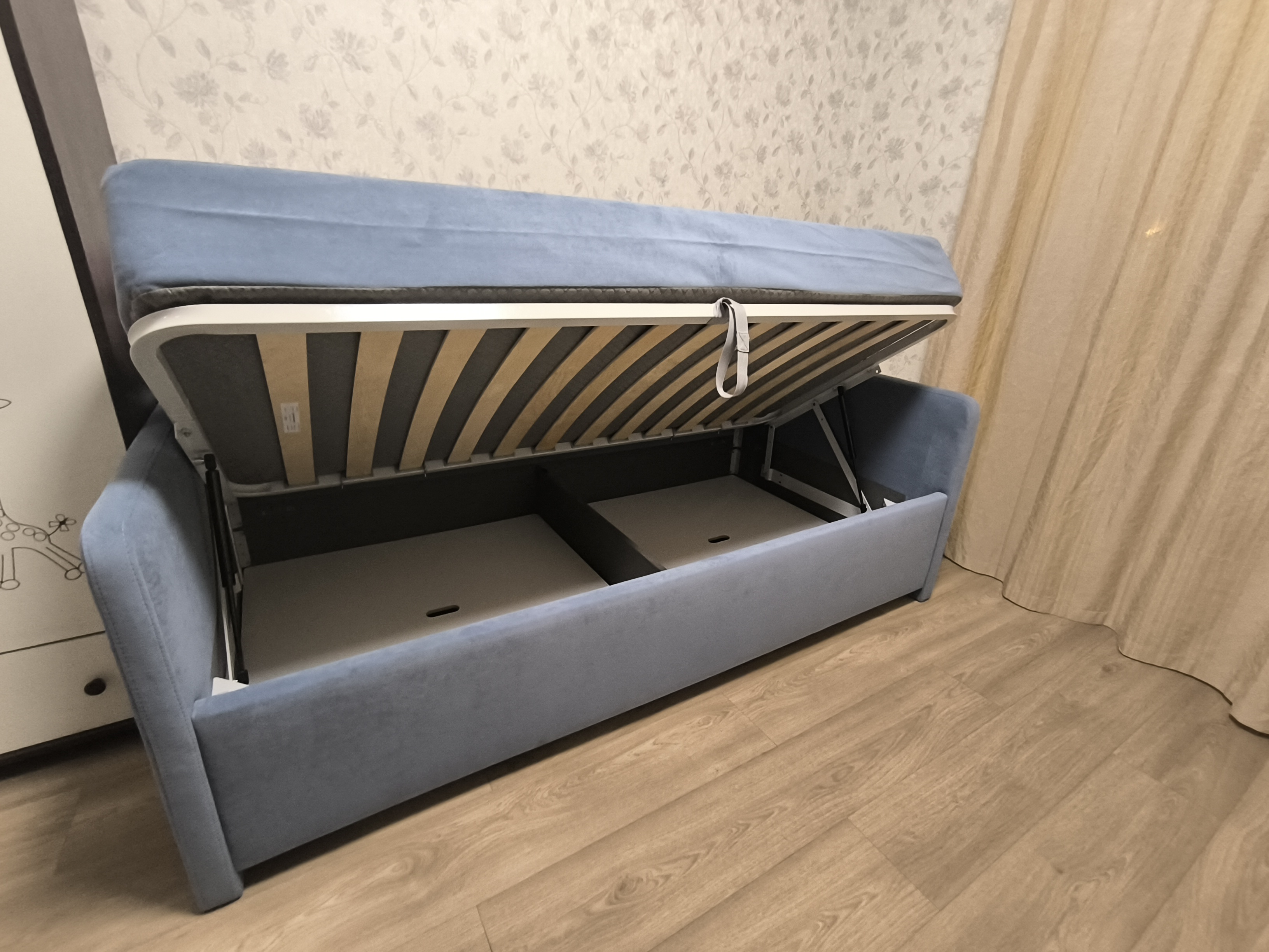 Огромное спасибо производителю за эту кровать. Красивая, удобная, вместительная и современная. Заказали кровать размером 90х190 с подъёмным механизмом и ящиками для хранения. Так же заказали матрас с чехлом под цвет кровати и декоративные подушки. Дочь в восторге.
