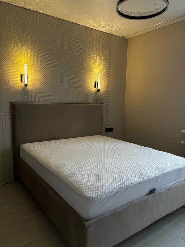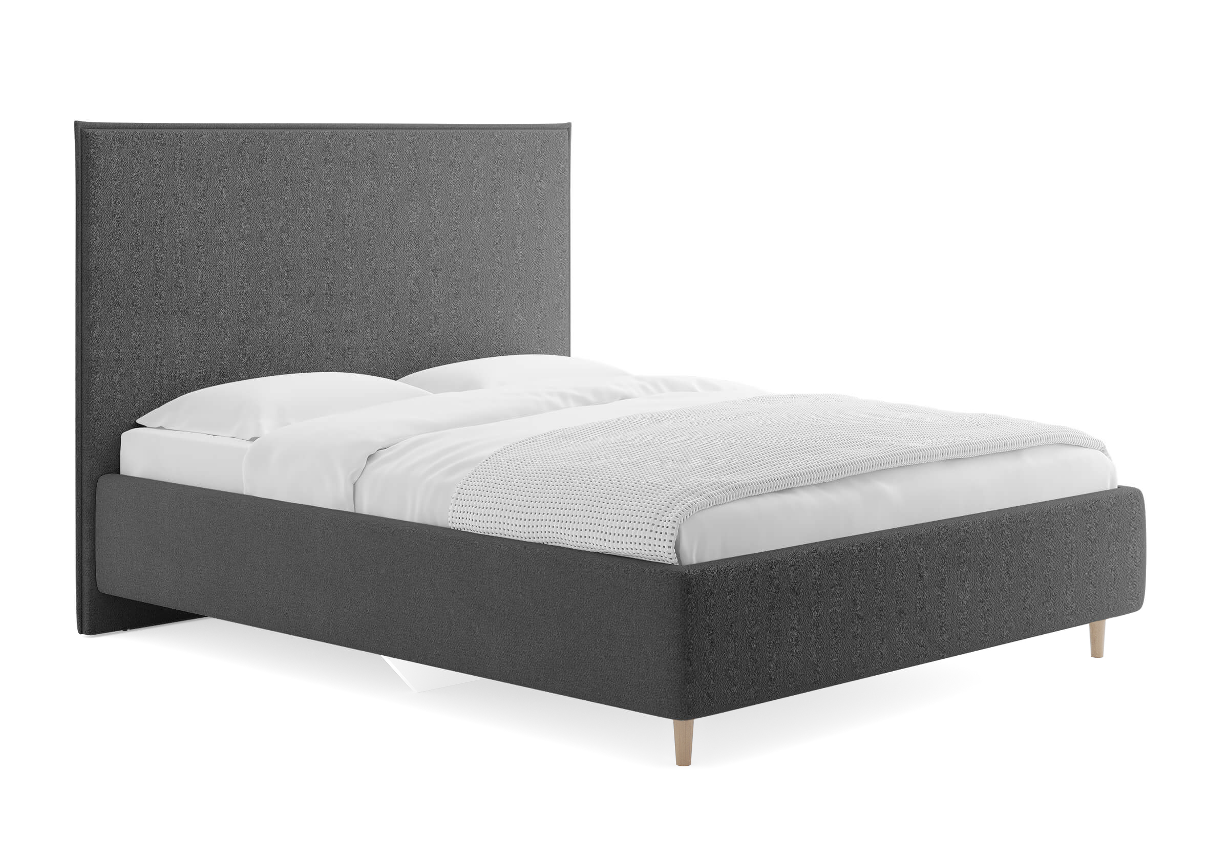 Кровать Eveline для современных интерьеров в скандинавском стиле. Выглядит эффектно благодаря мягкому высокому изголовью с декоративным кантом по периметру и опорам из натурального дерева. Модель будет смотреться выигрышно и актуально в интерьере, делая спальню уютнее, настраивая на отдых. При необходимости кровать может быть укомплектована разборным или неразборным металлическим основанием с ламелями, подъемным механизмом с бельевым коробом.