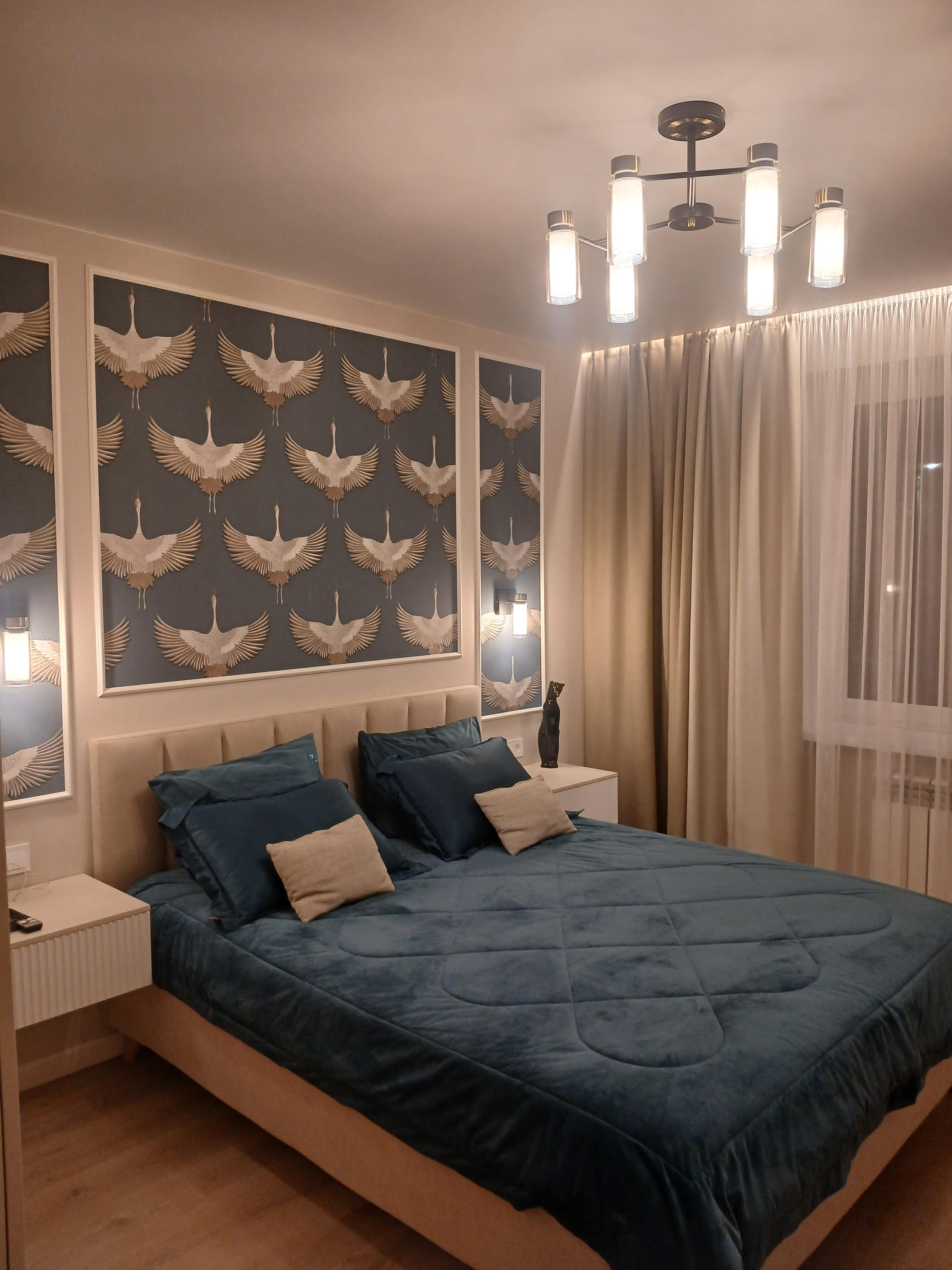 Недавно мы с женой решили обновить спальню и добавить в нее яркий акцент. Поэтому выбрали кровать с обивкой из велюра в синем цвете, и это было идеальным решением! Она выглядит роскошно и уютно, а главное стала настоящим украшением нашей спальни.