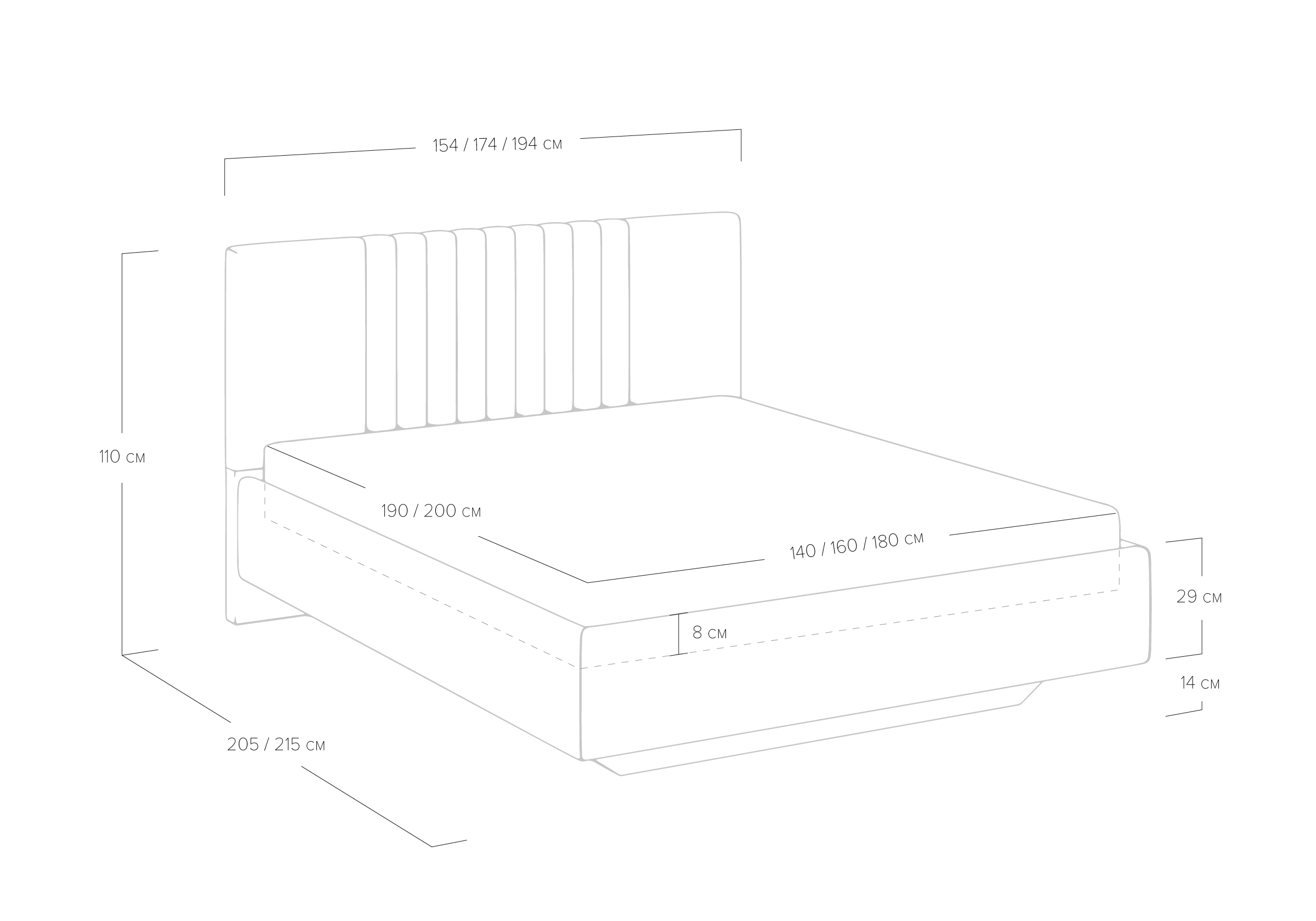 Благодаря уникальному конструктиву кровать будто парит над полом и придаёт интерьеру спальни оригинальность.