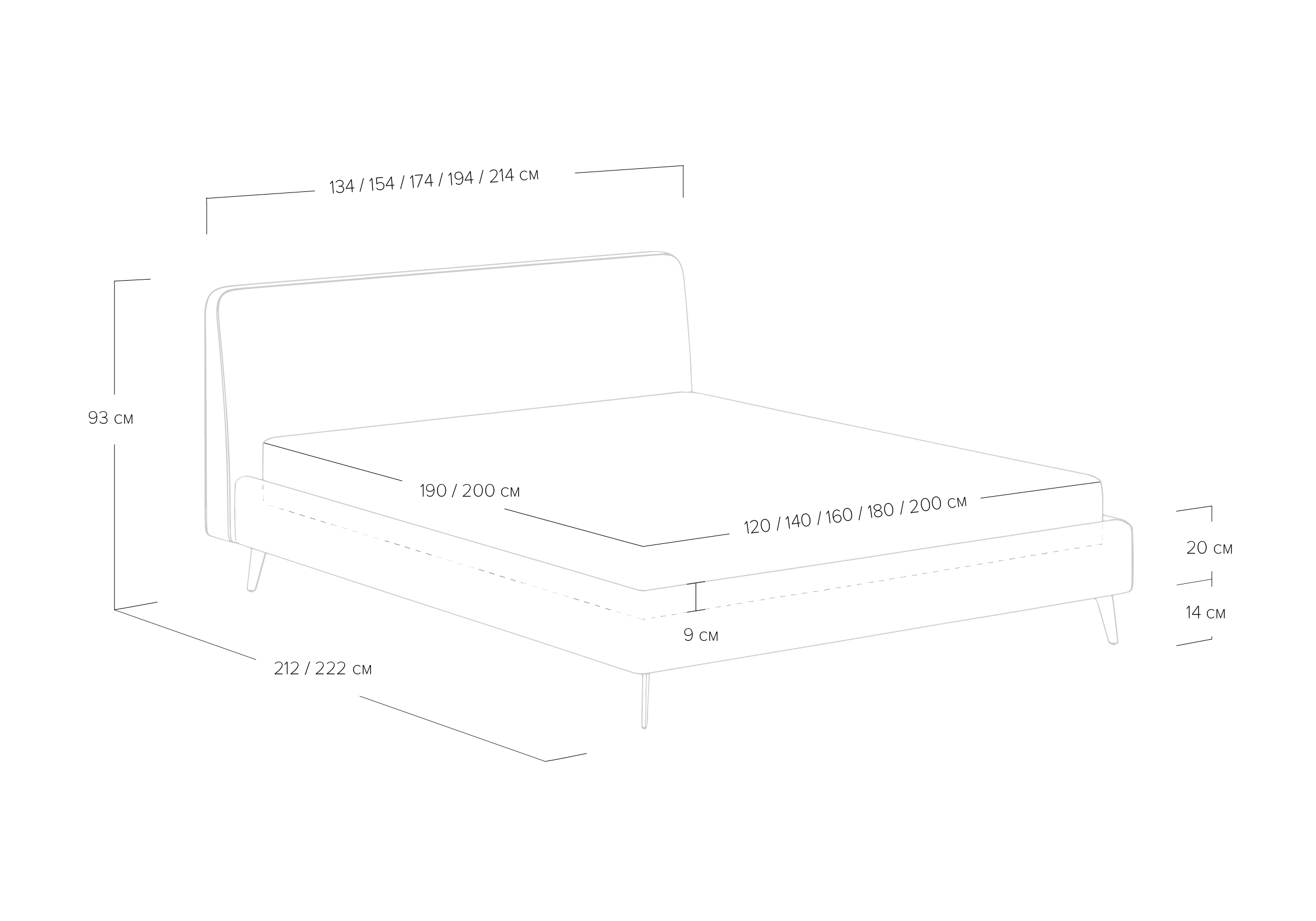 Основание кровати на металлических элегантных опорах. Благодаря увеличенной высоте позволяют осуществлять легкую уборку под кроватью, даже с помощью робота-пылесоса.
