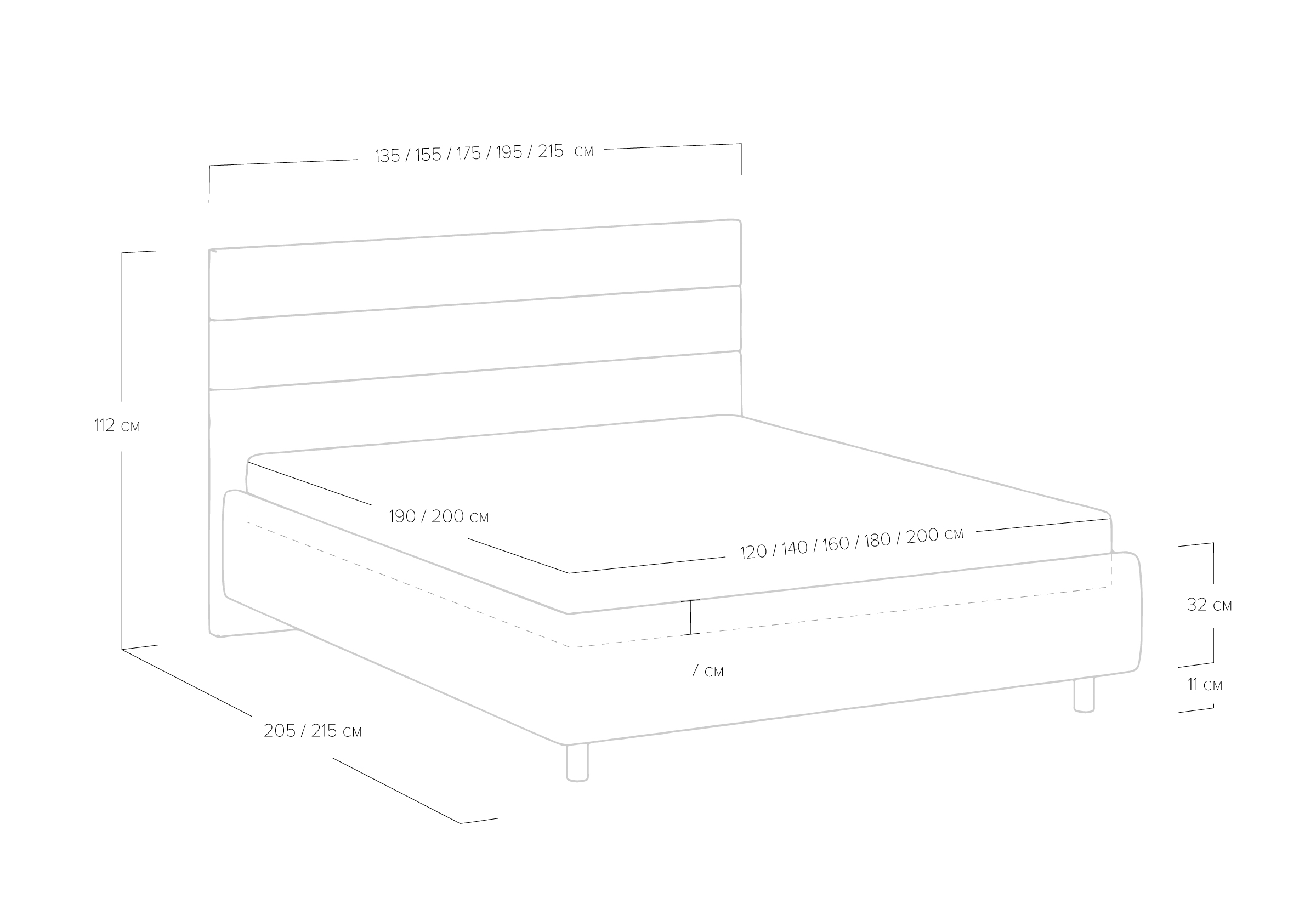 Лаконичная кровать Linda отлично подойдет для спален в современном стиле и стиле минимализм. Глубокие горизонтальные утяжки на изголовье добавляют модели выразительности и объема, делают ее универсальной для современных интерьеров. Увеличенный просвет от пола позволяет облегчить уборку под кроватью, в том числе роботом–пылесосом. Царги кровати выполняются по технологии съемного чехла. При необходимости кровать может быть укомплектована разборным или неразборным металлическим основанием с ламелями, подъемным механизмом с бельевым ящиком.