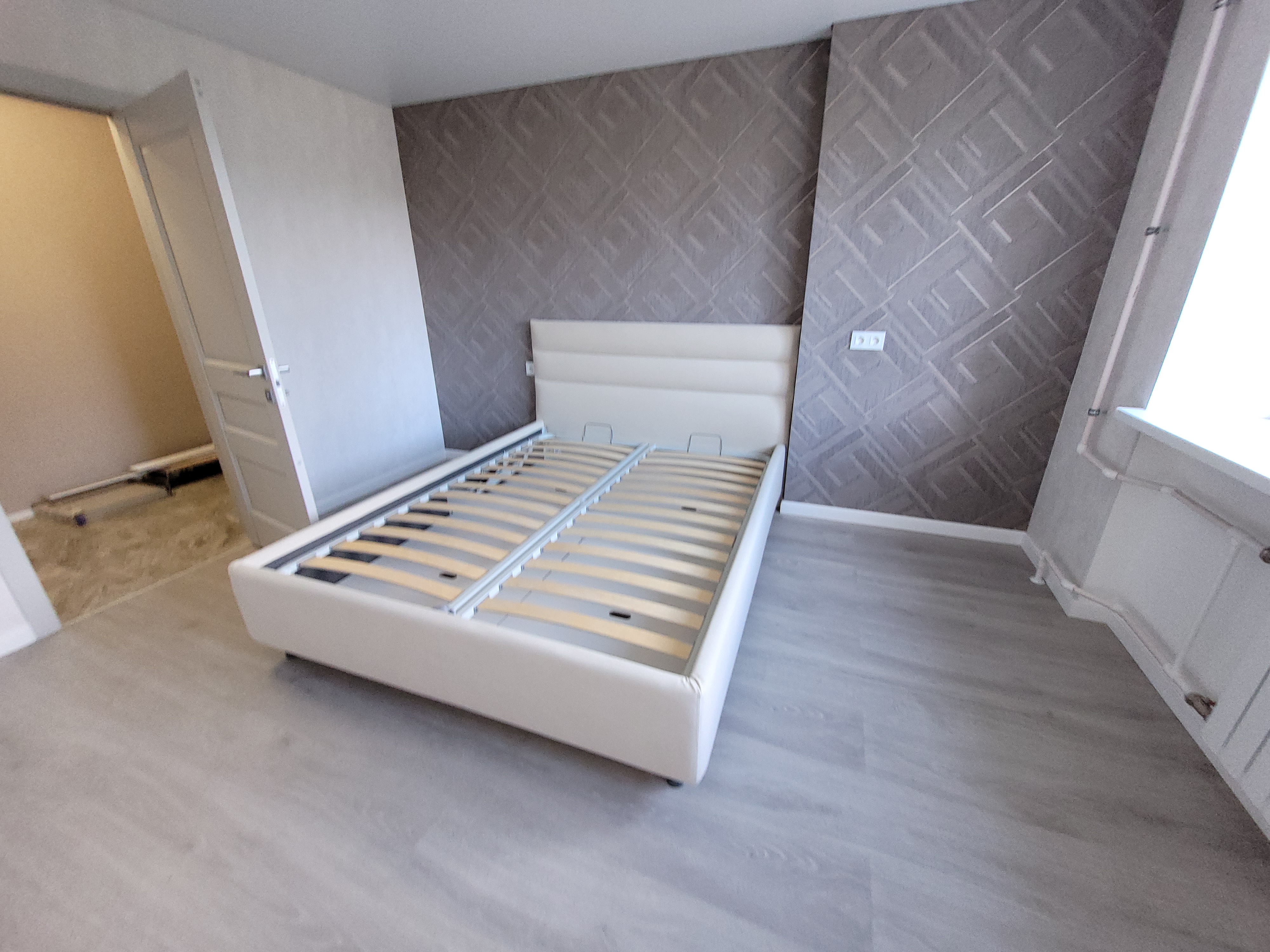 Основание кровати на металлических ножках. Благодаря увеличенной высоте позволяют осуществлять легкую уборку под кроватью, даже с помощью робота-пылесоса.