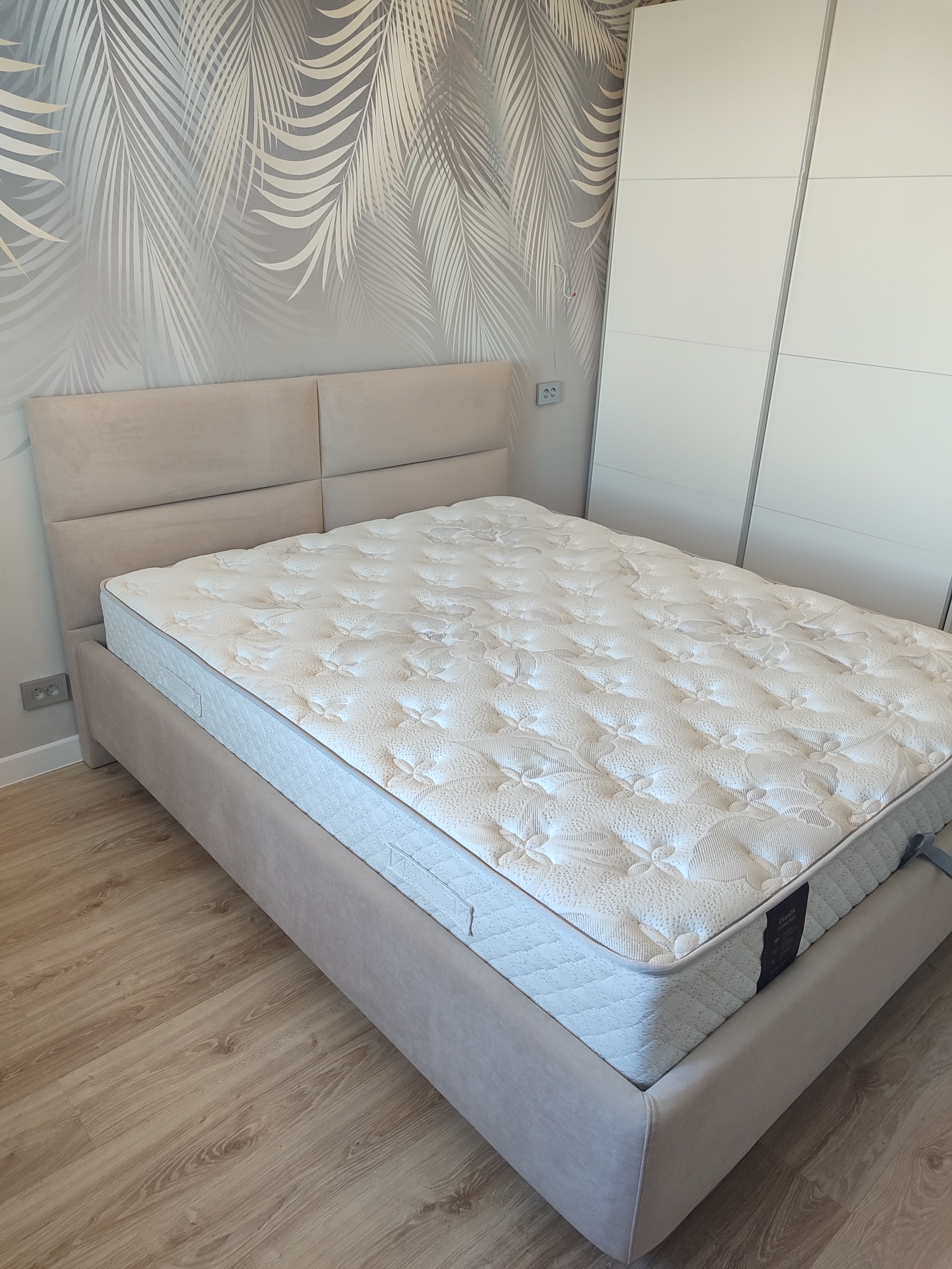 Кровать Omega 160 на 200 цвет обивки Тедди и матрас Dianta Hard покупала в Ярославле на Полушкина Роща 9. Быстрые сроки производства. Пользуюсь уже месяца 3 и пока нареканий нет. Высота ножек позволяет мыть пол под кроватью. Широкие ламели. Обивка ткани по периметру кровати съемная, кроме изголовья. Отдельное спасибо консультанту Ольге.