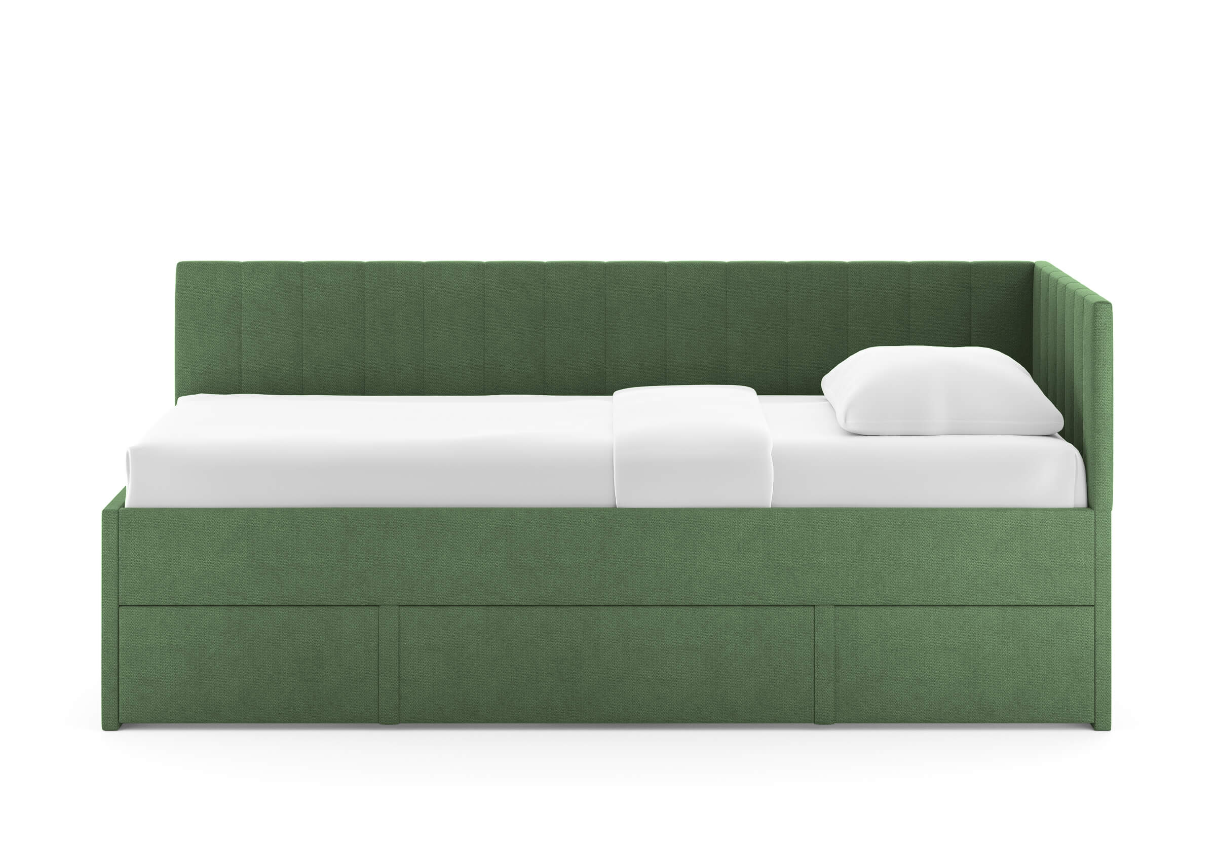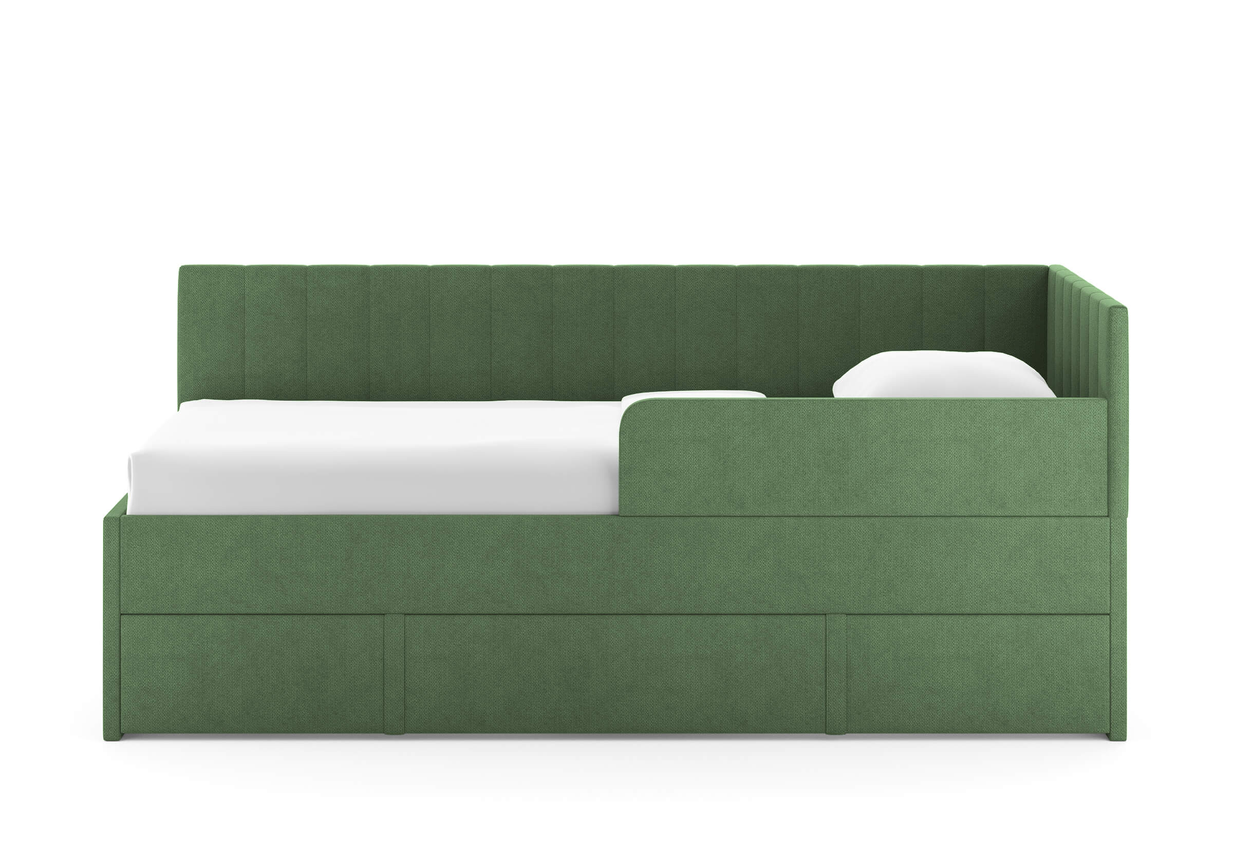 Современная детская кровать — воплощение удобства и яркого дизайна. Универсальный подлокотник устанавливается как с левой, так и с правой стороны — подстраивается под любую комнату. Выдвижной ящик легко превращается во второе спальное место или вместительный короб для хранения игрушек и белья. Идеальное решение для комфортного сна и экономии пространства.