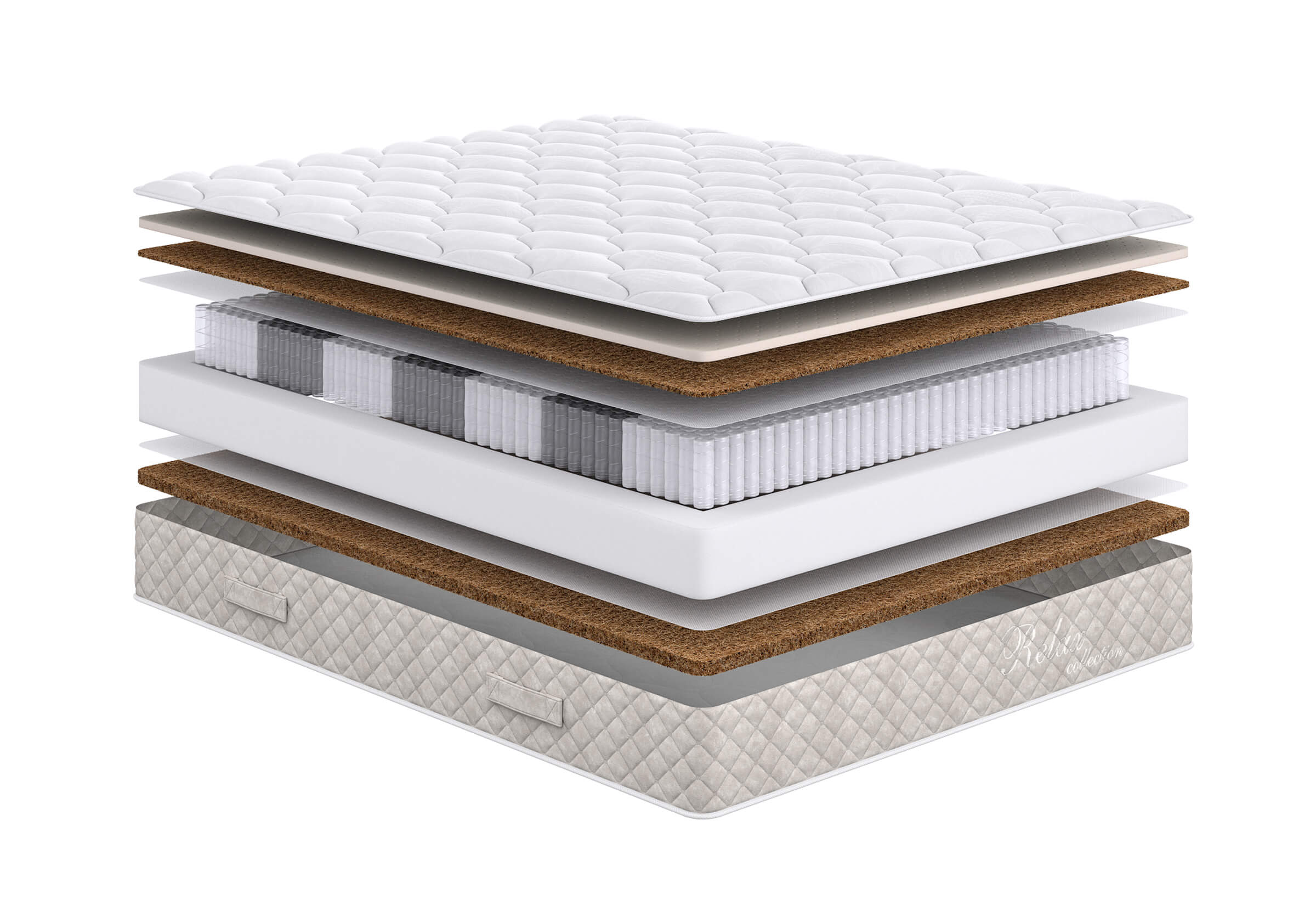 Природный натуральный материал. Состоит из волокон ореха кокосовой пальмы, пропитанных составом из натурального латекса. Гипоалергенен, обеспечивает циркуляцию воздуха и теплообмен.