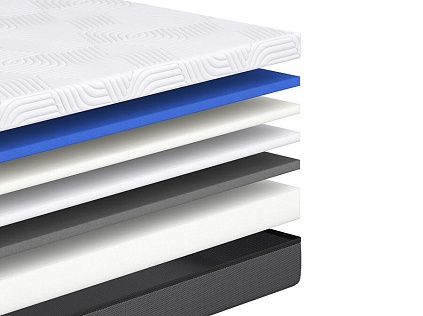 Оптимально подобранные слои из современных пен разной плотности, жесткости, с разными свойствами, для здорового и комфортного сна.