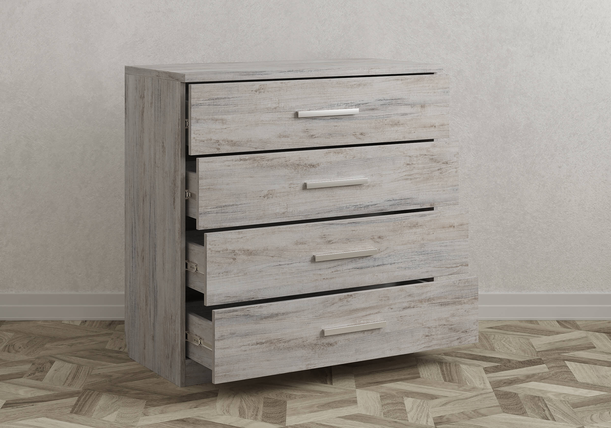 Комод Авангард - лаконичное и функциональное решение для интерьера в современном стиле и стиле минимализм. Он является идеальным дополнением к тумбам Авангард 1 и Авангард 2, комбинированным кроватям и кроватям из ЛДСП. Комод подойдет для просторных и небольших помещений. Фасады выдвижных ящиков с металлическими ручками, верхняя столешница из ЛДСП увеличенной толщины. Четыре выдвижных ящика оснащены надёжными направляющими, обеспечивающими лёгкое открытие. У комодов предусмотрен скос под плинтус, благодаря которому зазор между стеной и комодом будет минимальным. Многообразие цветовых решений позволяет легко вписать модель в готовый интерьер.