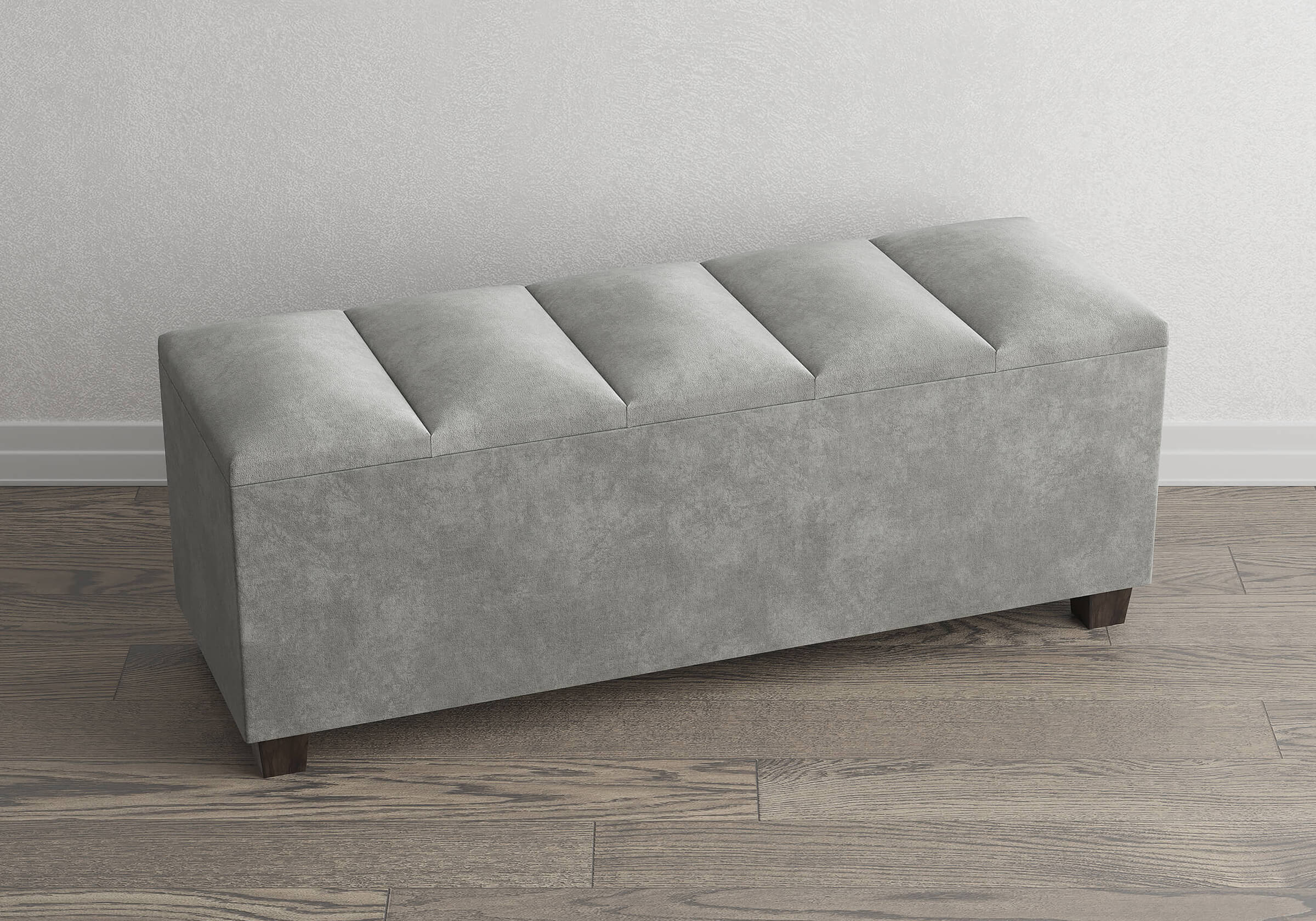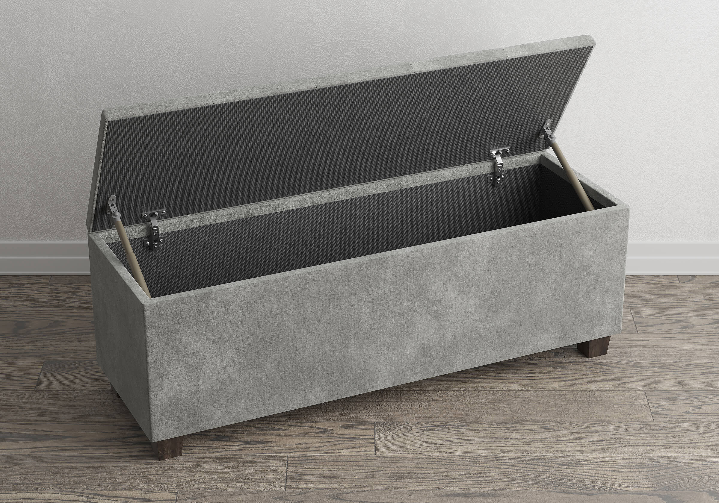 Банкетка Rondo с местом для хранения легко впишется в современный интерьер. Высота сидения, габариты, мягкие сегменты банкетки делают ее удобной в эксплуатации. Она универсальна и подойдет как для спальни, так и прихожей. Банкетка оснащена вместительным ящиком для хранения. Крышка удерживается в открытом состоянии с помощью надежных газ лифтов, а для удобства открывания предусмотрена тканевая петля. Опоры универсальные, цвет венге. Варианты исполнения - все виды ткани