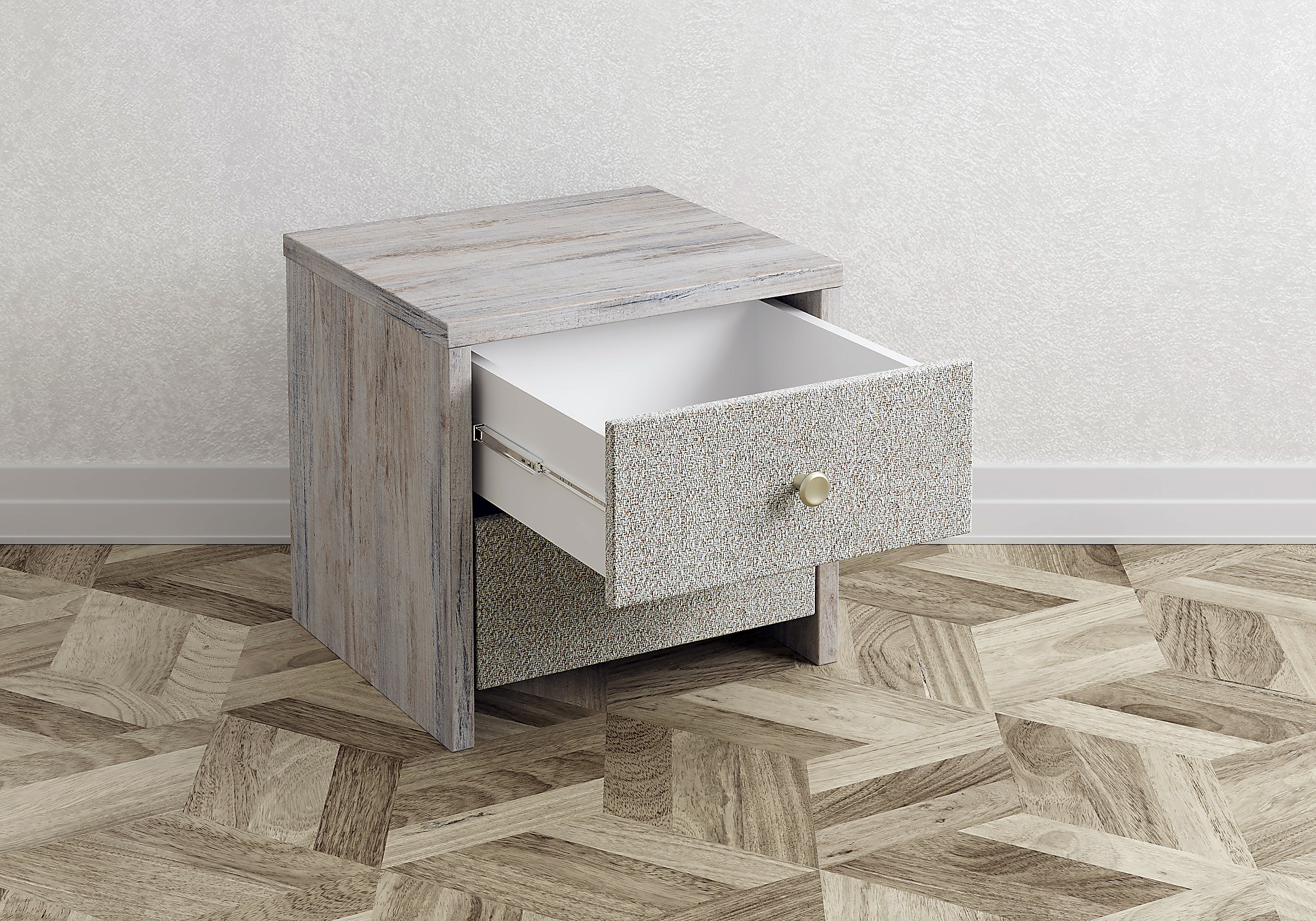 Прикроватная тумба с выдвижными ящикам сочетается с любыми моделями кроватей. Прямые углы, лаконичные  металлические ручки, увеличенная толщина плиты ЛДСП 25 мм. Шариковые направляющие без доводчика. Фасады выдвижных ящиков выполняются в любой ткани на выбор. Стильная и практичная тумба прекрасно дополнит собой как кровать в полностью мягком исполнении, так и для комбинированных моделей из мягкого изголовья с ламинированными царгами.