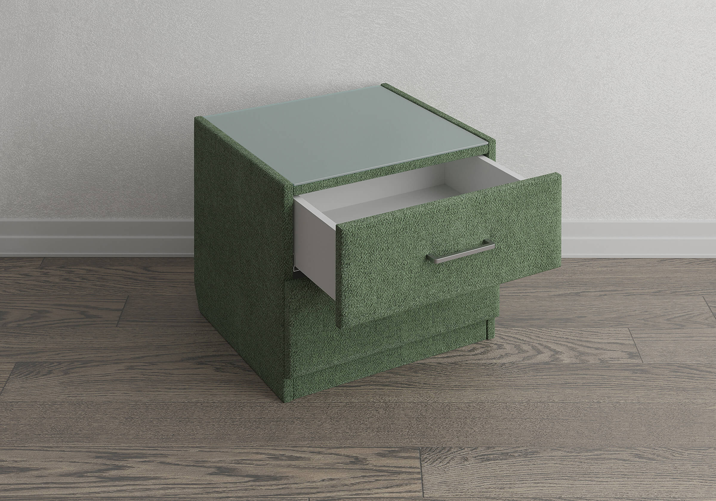 Стеклянная столешница заказывается дополнительно. Выглядит эстетично, предохранит тканевую поверхность от загрязнений и пыли.