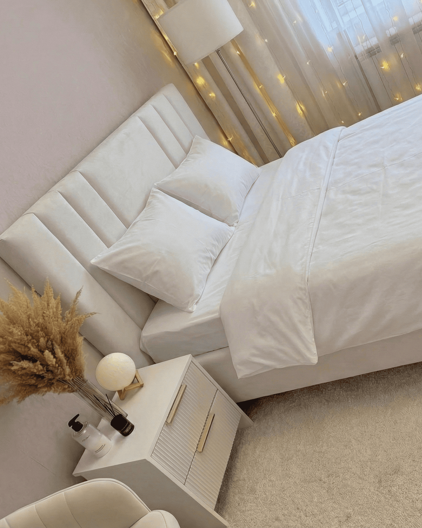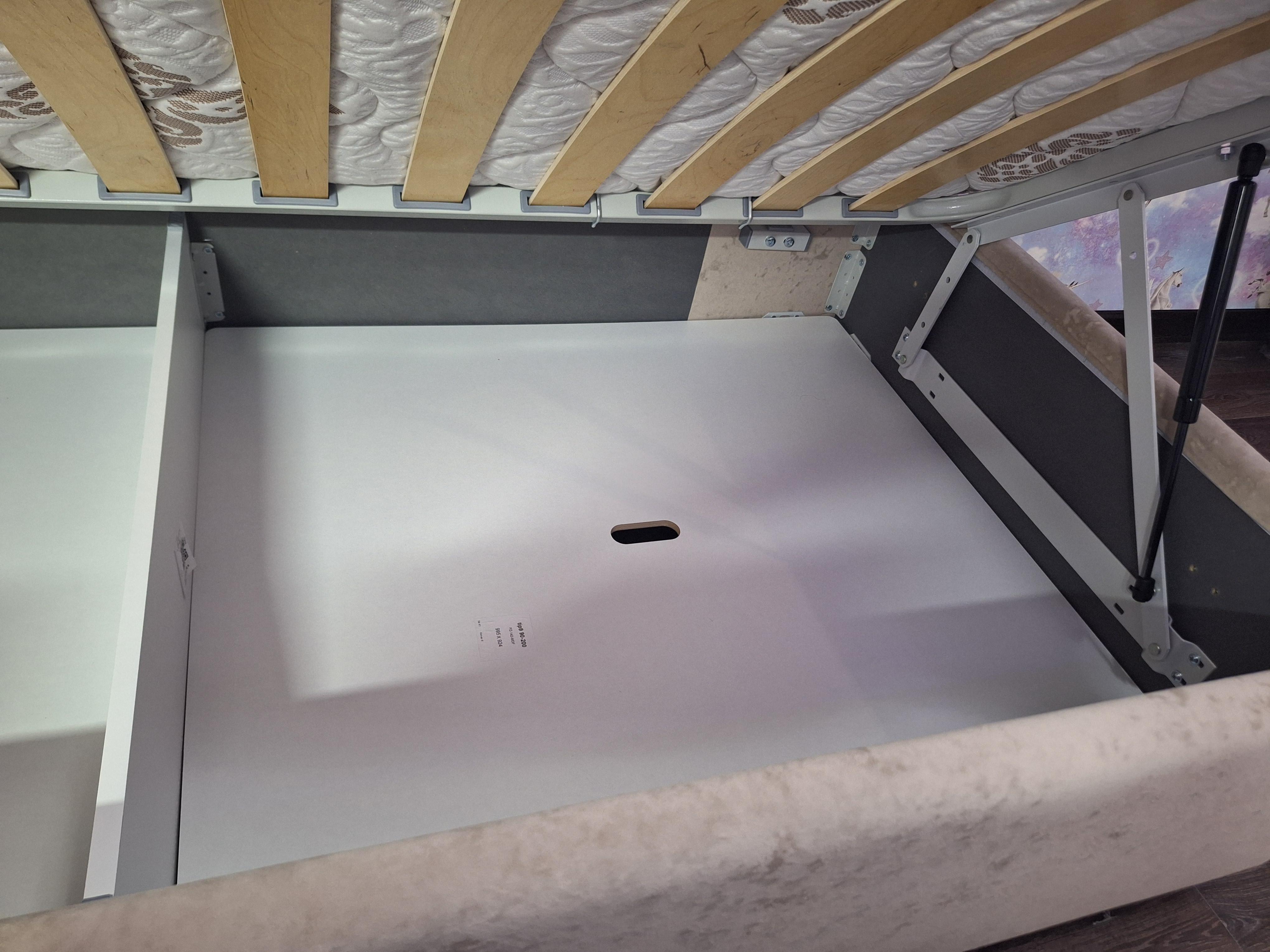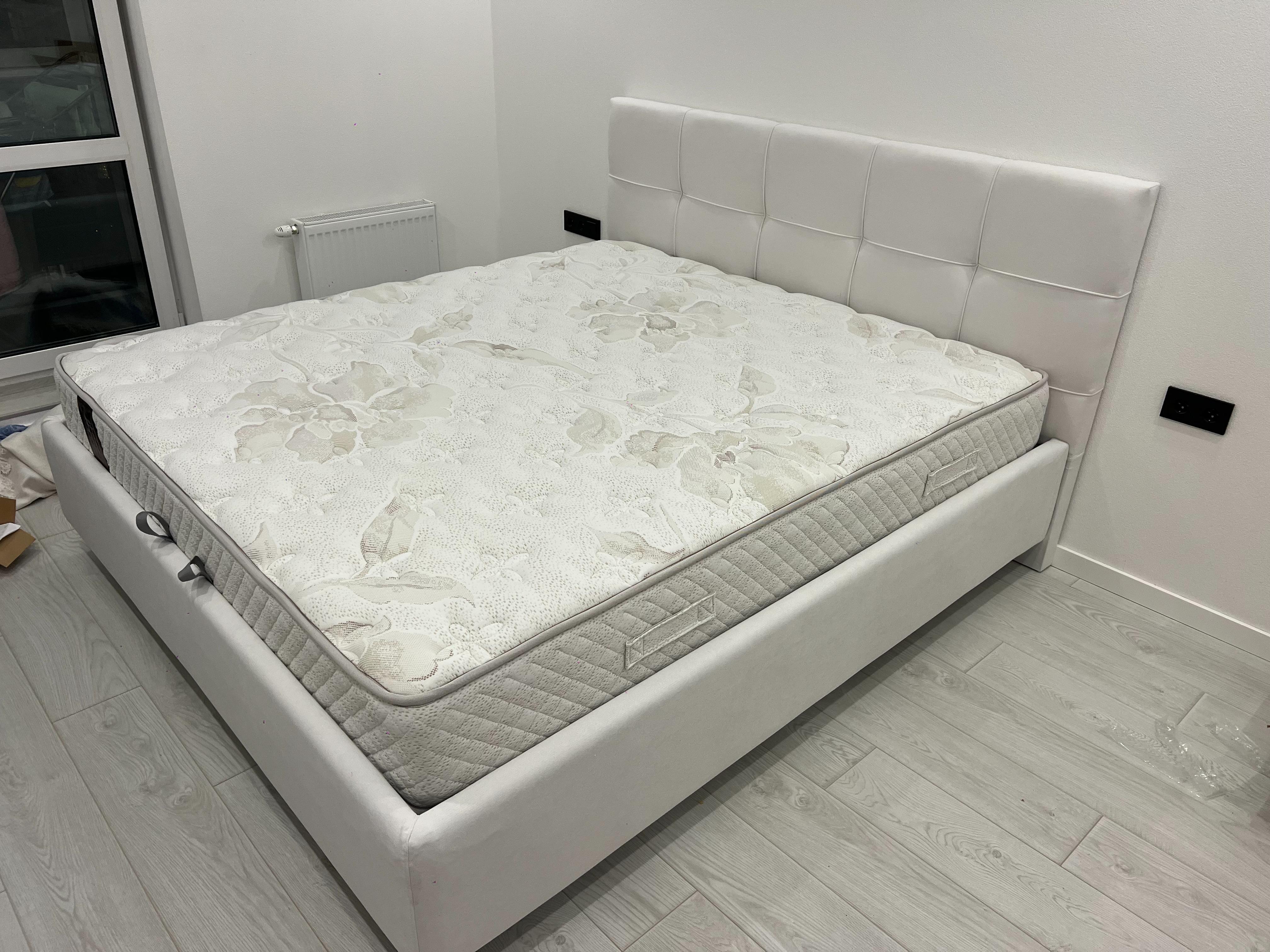 Кровать очень стильно выглядит, прям как из Pinterest, давно такую искала. Долго выбирала и остановилась на этом экземпляре. В приоритете был подъемный механизм, большой ящик, мягкая основа. И большая спинка со стороны головы. Отличная ткань, всё крепкое и надёжное. Комплектом к кровати взяли матрас. Просто идеальный, прошит аккуратно, чистый, соответствует всему заявленному, стал любимым местом семьи. Этикетка производителя на месте, всем советую такой матрас, совсем не пожалела, что купила такое спальное место.